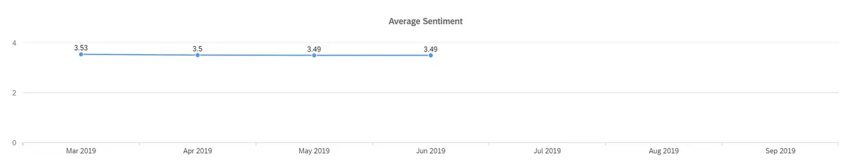 显示所选的时间内所有社交媒体消息的情绪分值。使我们能根据情绪评分变化改变营销活动策略。