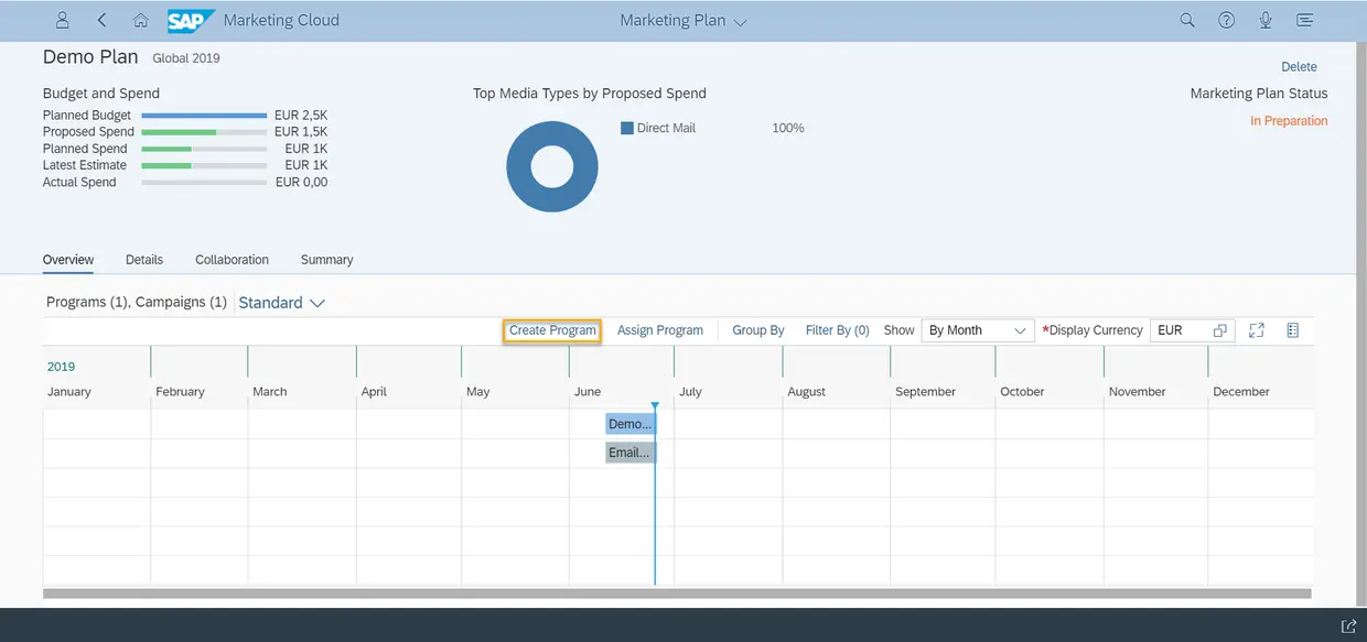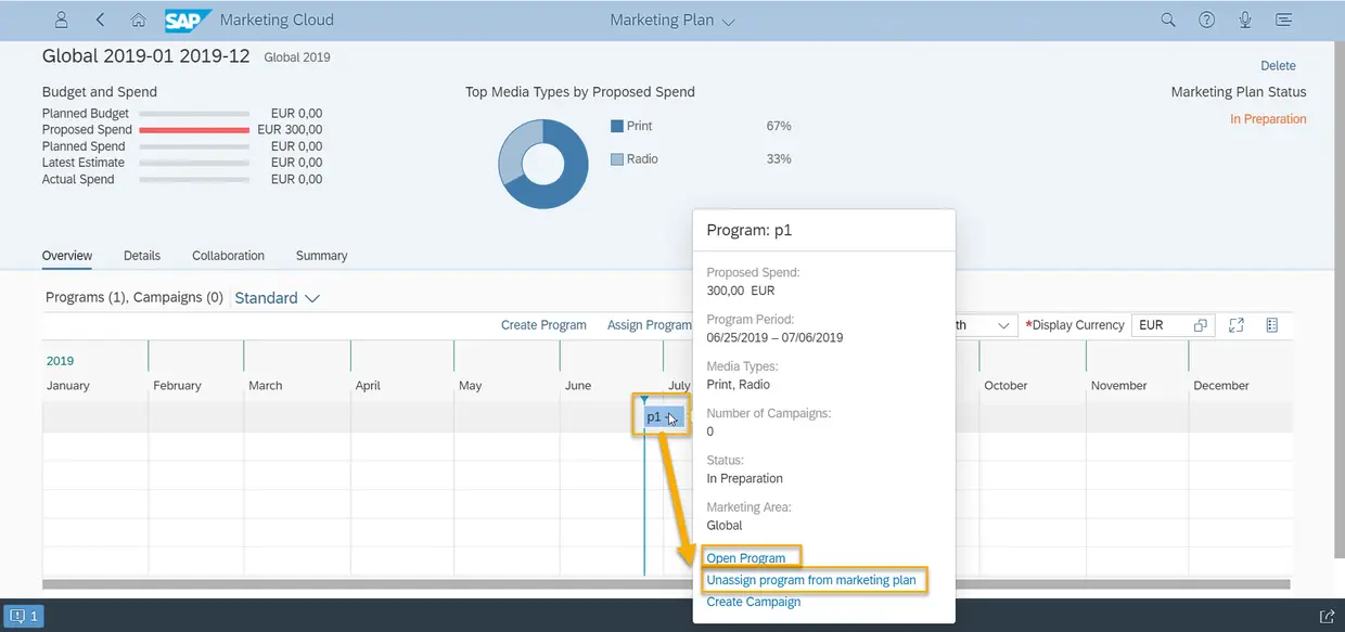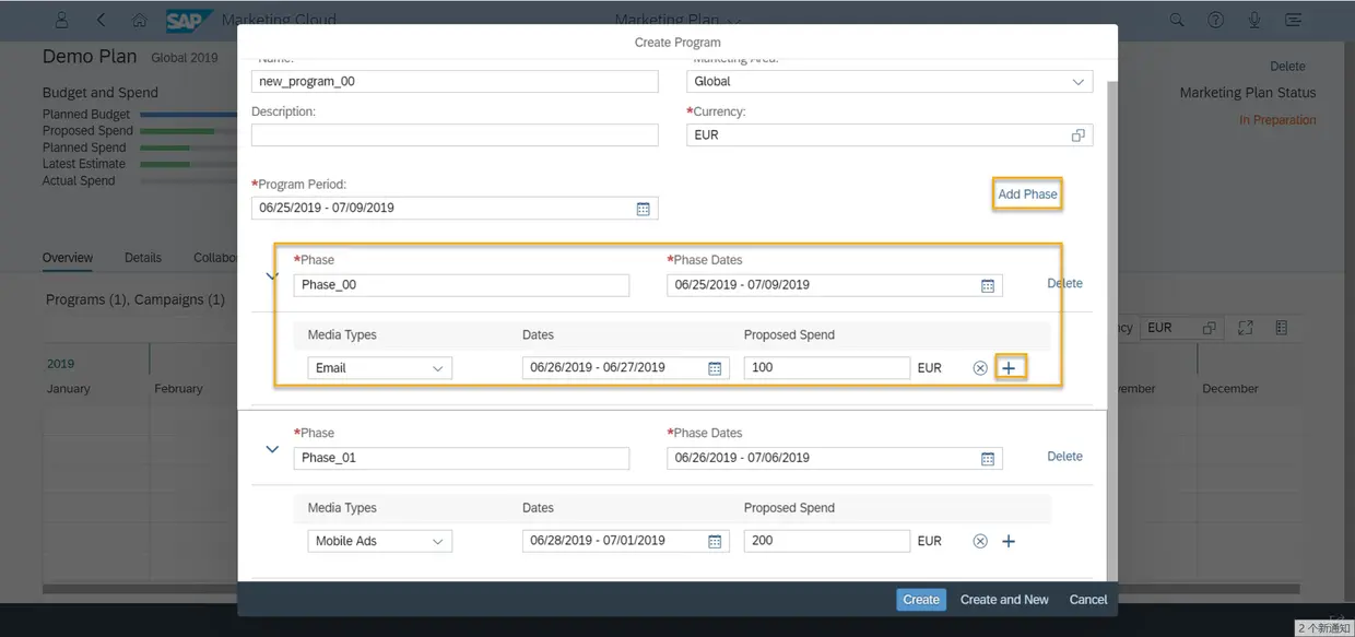 分配预算计划: 为某个具体的Marketing Plan创建Program。
