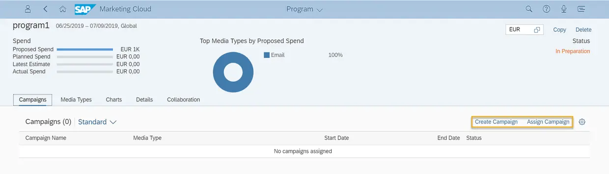 打开Program后可以为该Program创建Campaign或者指定之前创建好的Campaign.