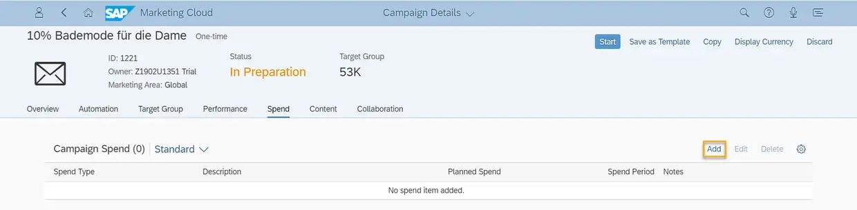 在Campaign的Spend模块可以对Spend进行查看和编辑。