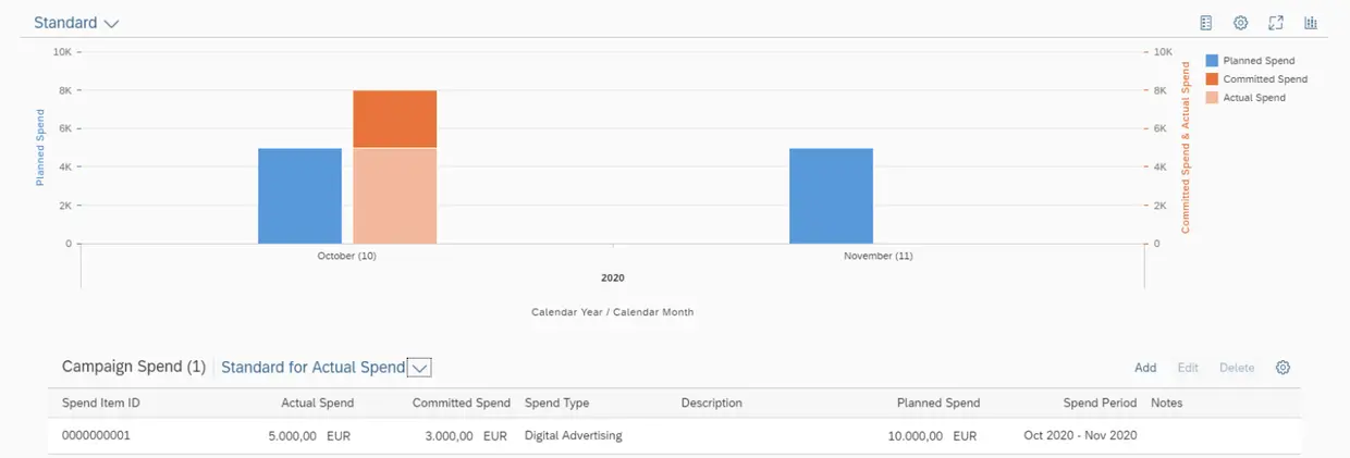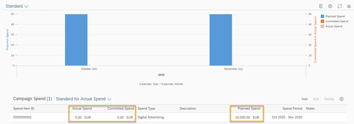 实际支出:从Campaign产生,并获得市场营销预算资助的金额, 发生在过去。