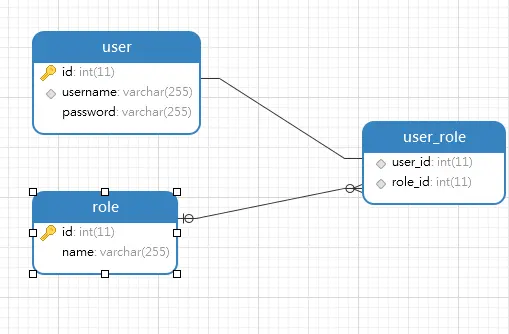 建立三个表,user存储用户账号和密码,role存储角色,user_role存储用户的角色