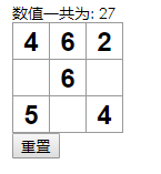 一个简单的demo,如上图所示,每点击一次格子,对应数字+1,然后计算数字总和,并提供重置按钮。