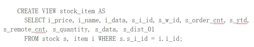 在 OLTP 场景中,通过减少应用与数据库的交互次数来实现性能提升的例子很多,可更新视图就是其中之一。我们常见的数据库视图通常是只读的,通过定义视图,用户可以定义自己感兴趣的数据以及其获取接口,但视图同时也可以作为更新操作的入口,比如在 TPC-C 的 new order 创建场景中,应用需要得到商品信息,更新库存并得到更新后的值。一般可以通过两条 SQL 实现这一过程: