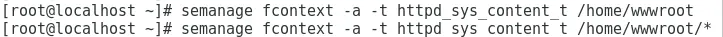 针对当前这种情况,我们只需要使用semanage命令,将当前网站目录/home/wwwroot的SELinux安全上下文修改为跟原始网站目录的一样就可以了。
