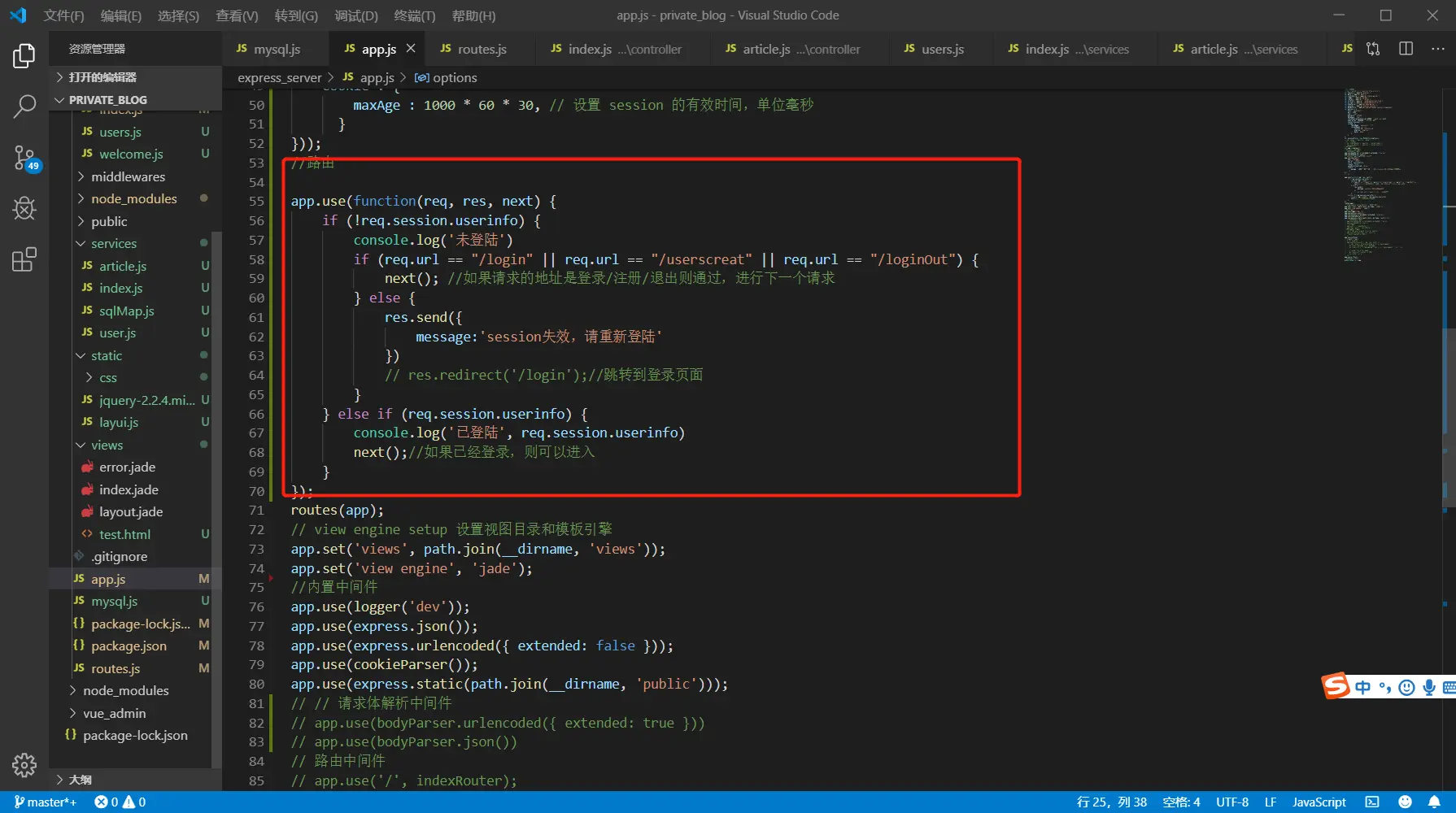 路由层的工作是根据请求路径匹配相应的路由然后调用相应的controller,原先路由的使用混在app.js文件中