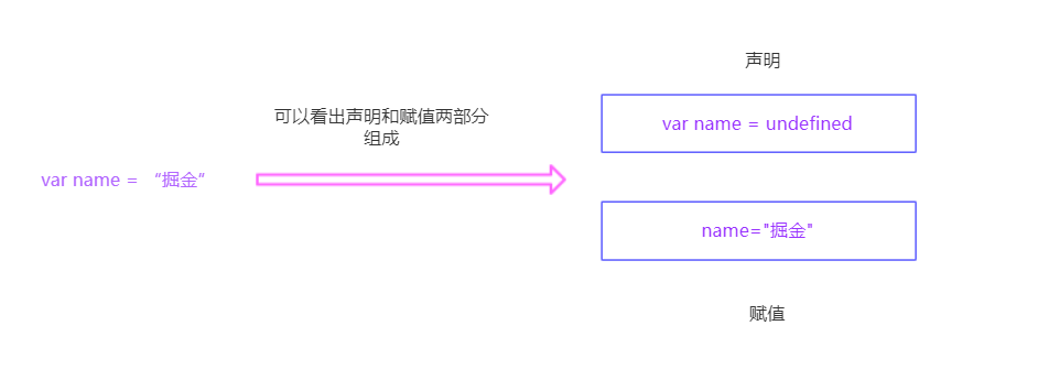 - 原有的var关键字会移除,例子中 name = "掘金",它变量提升的过程中就剔除var字段