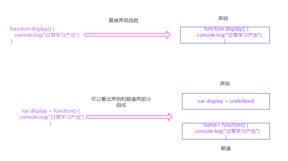 - 代码在执行的过程中,会把声明的部分提升到代码开头,如果有赋值就不用赋值,没有就设置默认值undefined
