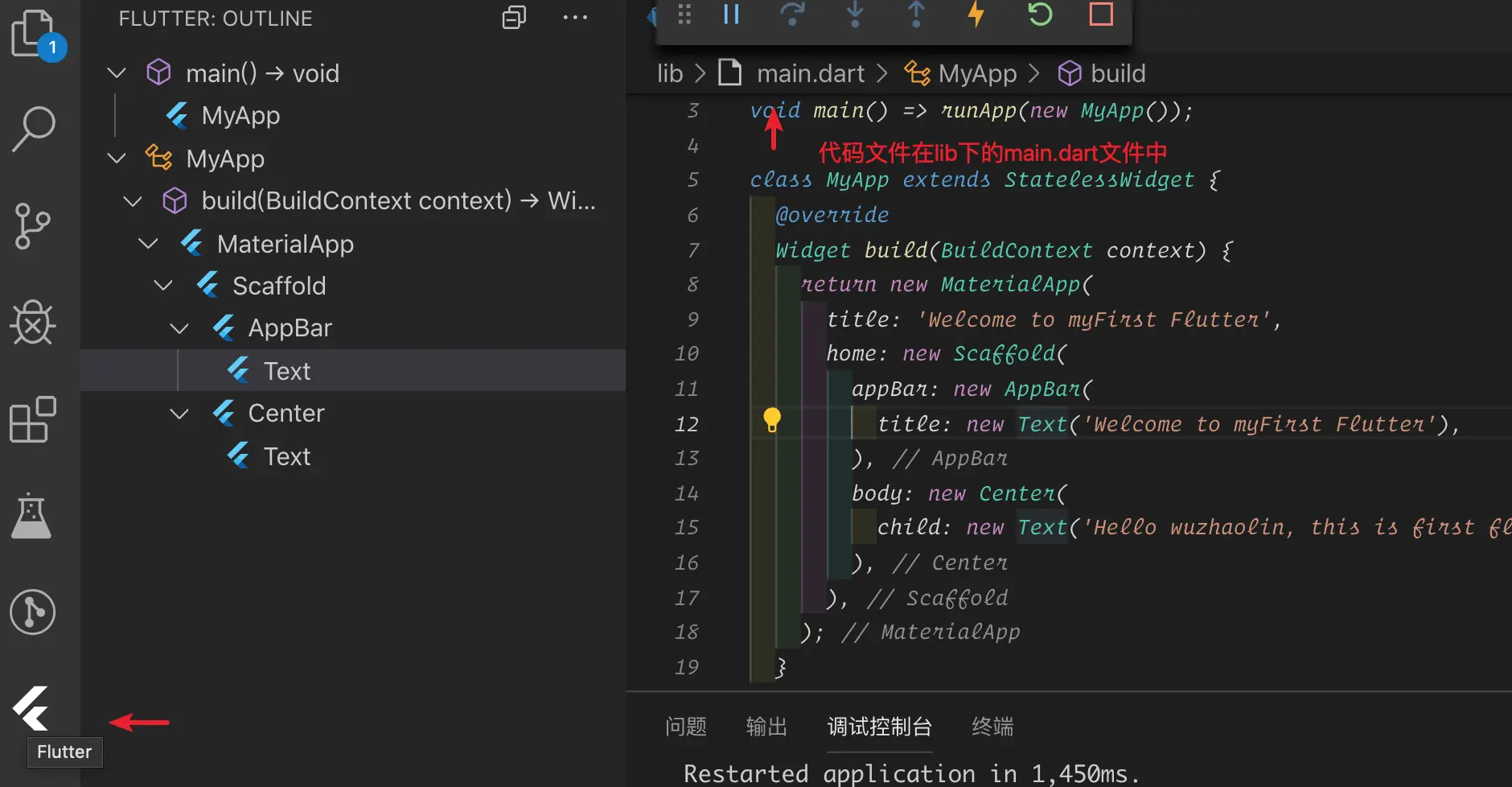 title: new Text('Welcome to myFirst Flutter'),