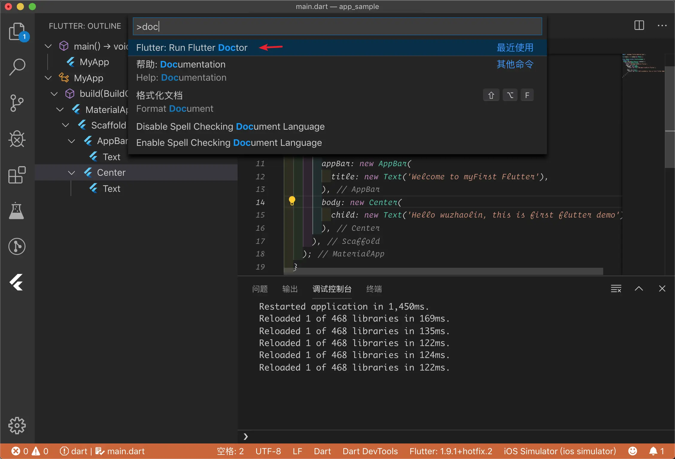 cmd + shift + p doctor看下控制台