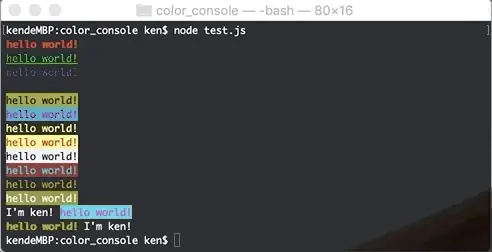 console.log(colorconsole.text('hello world!', 100, null, 'bold'), 'I\'m ken!')