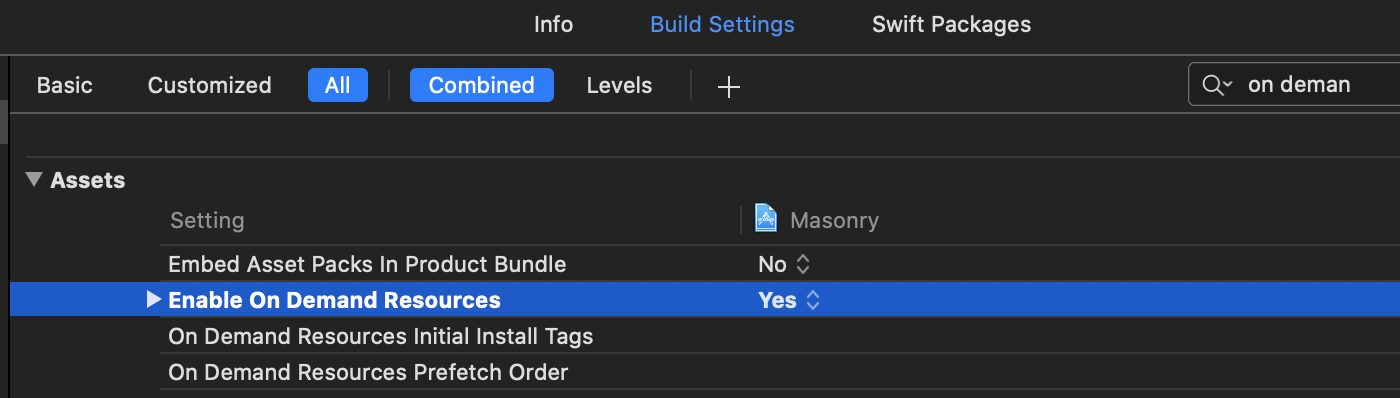 通过设置Xcode中的Build Settings设置,可以开启按需加载。