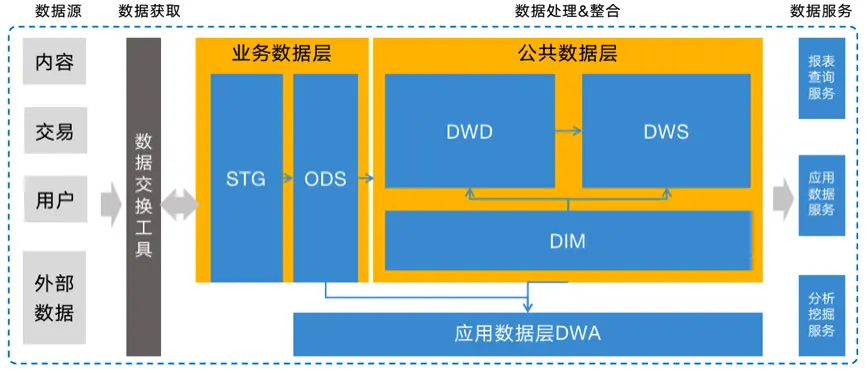 (3)应用数据层:DWA 层,主要用于各产品或各业务条线个性化的数据加工,例如商业化产品数据、搜索推荐,风控等。