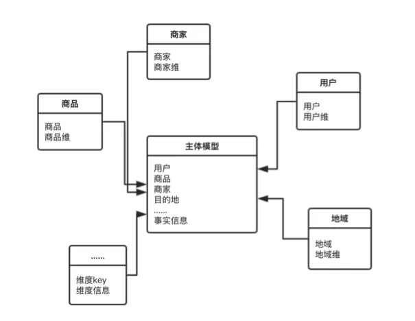 基于维度建模的思路,在模型整合生产总线各节点核心信息之后,会根据这些节点信息进一步扩展常用的分析维度,以减少应用层面频繁关联相关分析维度带来的资源消耗,模型会反范式冗余相关维度信息,以获取应用层的使用便捷。最终建立一个整合旅游、交通、酒店等各业务线与各业务节点信息的马蜂窝全流程订单模型。