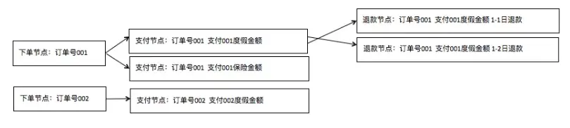 涉及的业务节点越多,业务流程也就越复杂。从数据的角度看,这些业务过程会产生两种基本的场景形态,即数据的拆分和汇聚。随着流程的推进,前一节点的原子业务单位在新节点中可能需要拆分出更多信息,或者参与到新节点的多向流程。同样,也可能发生数据的汇聚。以某个订单为例,下单节点数据是订单粒度的,而到支付节点就发生了数据拆分。数据的拆分、汇聚伴随着总线的各节点,可能会一直发散下去。