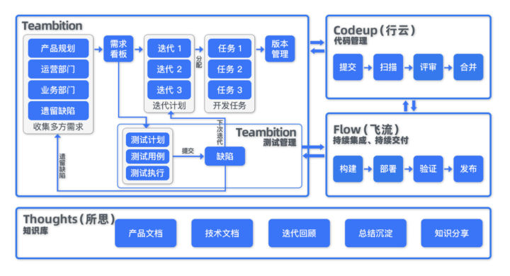Codeup不仅支持与持续集成流水线的打通,实现开发、构建在应用内的闭环,还将与Teambition的项目管理、知识库打通,真正实现一站式产品研发,帮助开发者实现工作全流程的数字化和自动化。
