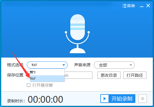 2、熟悉好相关功能后可以先选择输出的音频的格式,音频的格式分为mp3和wav两种,而我们要选择输出为无损的wav格式。