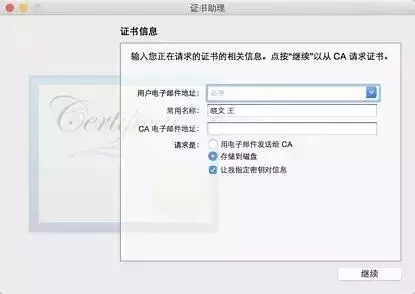 这里就是输入邮箱,名字,在请求是下我们选择存储到磁盘,把申请文件存在硬盘上,后面需要上传这个文件到苹果后台。