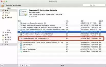当一个Apple ID已经在A电脑上生成并安装了证书后,如果在B电脑上下载证书进行安装时,安装的证书不带密钥,这样的证书,无法进行签名。