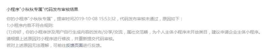 对于个人小程序审核不通过的主要原因就是下面这条: