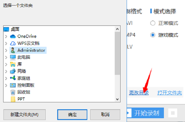 4、文件夹选择完成后打开电脑上的游戏,在开始游戏的同时点击面板下面的“开始录制”按钮。然后你的游戏就开始录制了。
