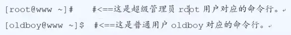 @前的是用户名,@后面的是主机名,@本身是分隔符~表示当前目录,没有的话就是在根目录#:结尾的是超级管理员账号,拥有最大的权限$:结尾的是普通用户