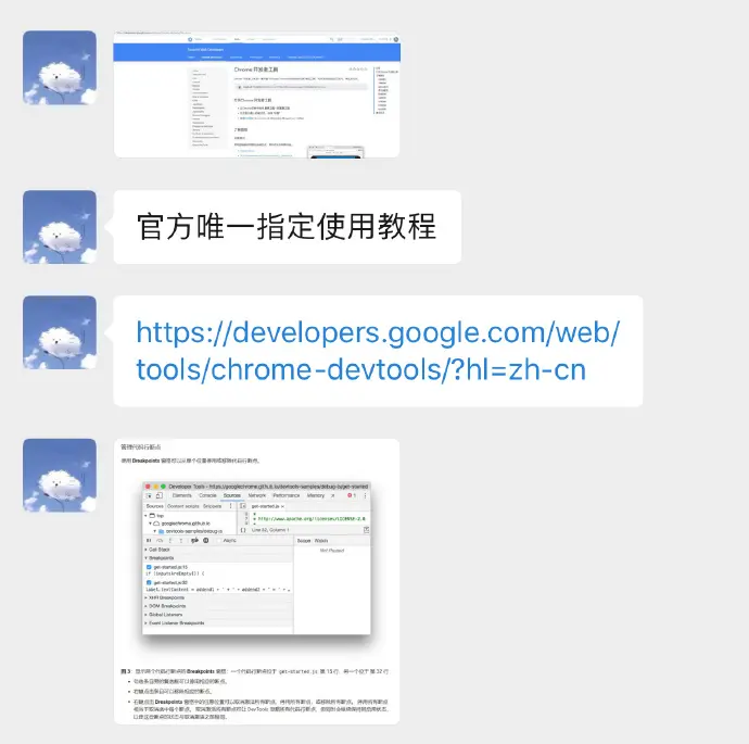 这里我遇到的第二个坑,这里坑的主要原因是我对调试工具的不熟悉,我一直使用的是F10的调试功能,正好 Loco大佬在群里讲解的时候说到了这一方面的资料: