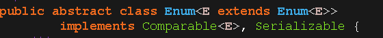 public abstract class Enum<E extends Enum<E>> implements Comparable<E>, Serializable {