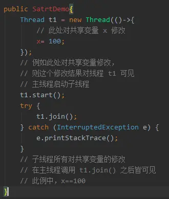 join 规则,如果线程 A 执行操作 ThreadB.join()并成功返回,那么线程 B 中的任意操作 happens-before 于线程A 从 ThreadB.join()操作成功返回。