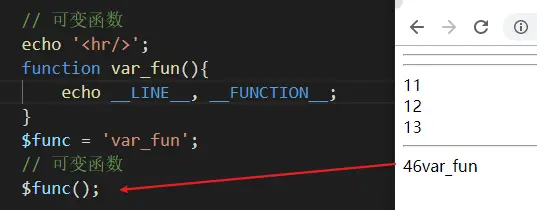 1、可变函数:当前有一个变量所保存的值,刚好是一个函数的名字,那么就可以使用变量+()来充当函数名使用