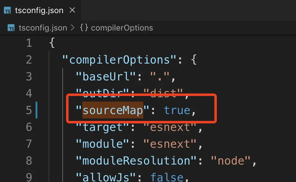 "sourceMap": false改成"sourceMap": true