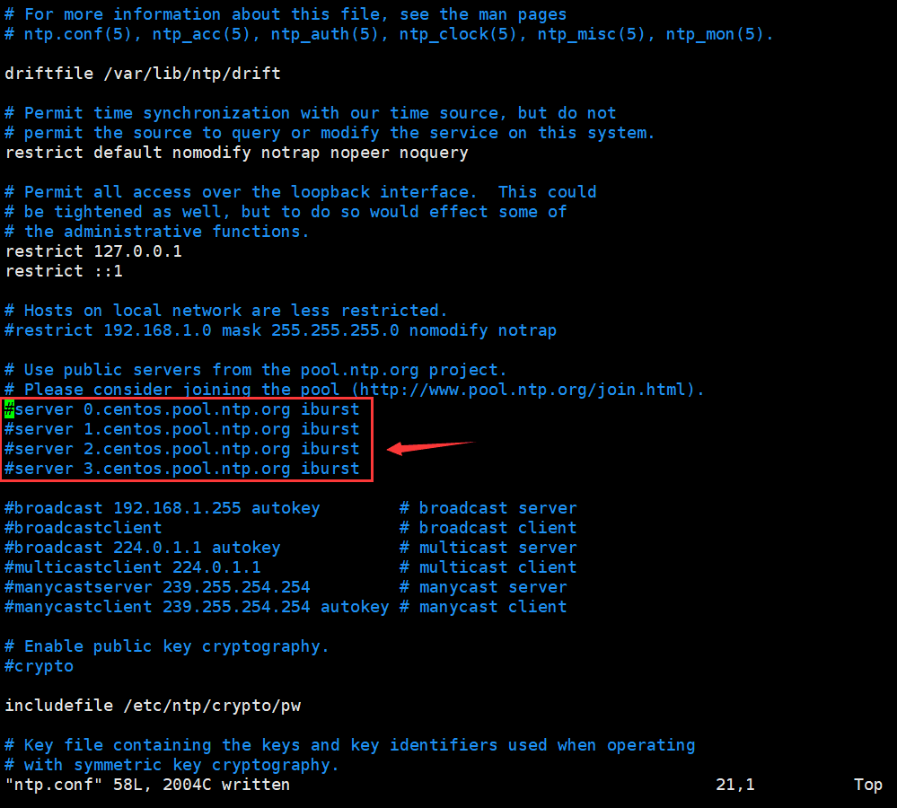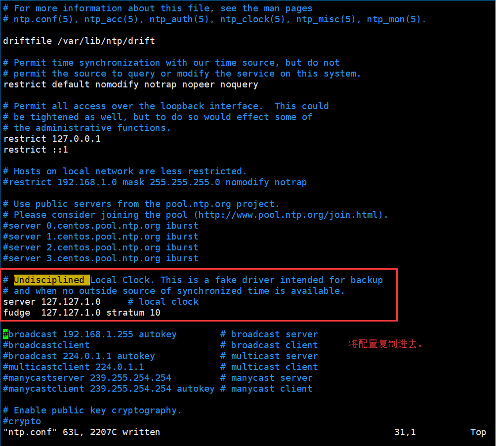 /etc/ntp.conf,配置使用本地时间,不与网络同步。
