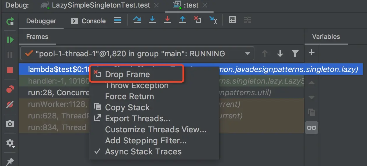 在debug控制台能够很方便的查看线程的执行状态,也可以很方便的选择某个线程去执行: