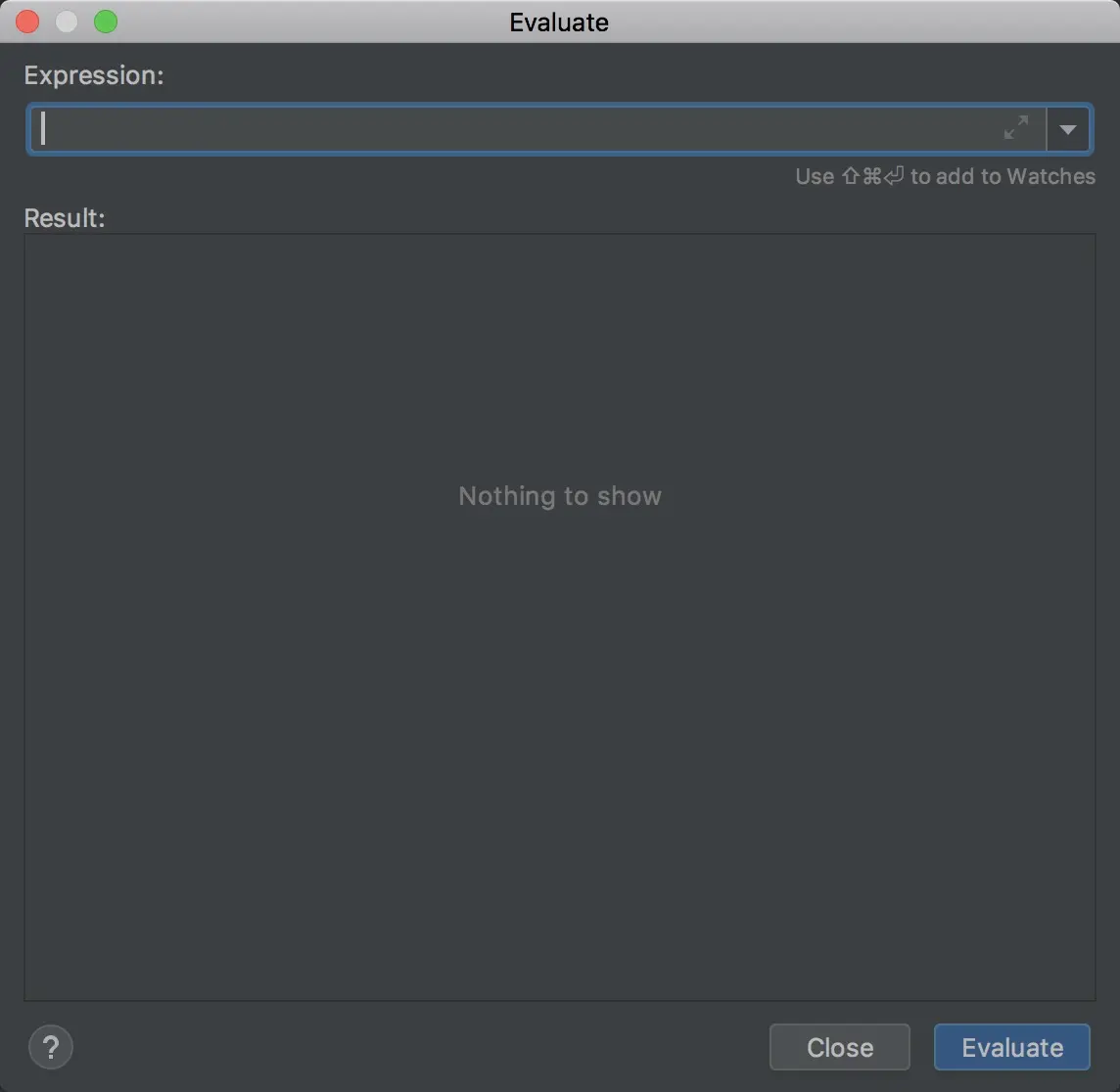然后你就可以在表达式输入框中,输入你想要的操作,比如,查看变量、修改变量(临时的)、调用某个方法等;这些操作结果将会在下方的Result 窗口中输出。