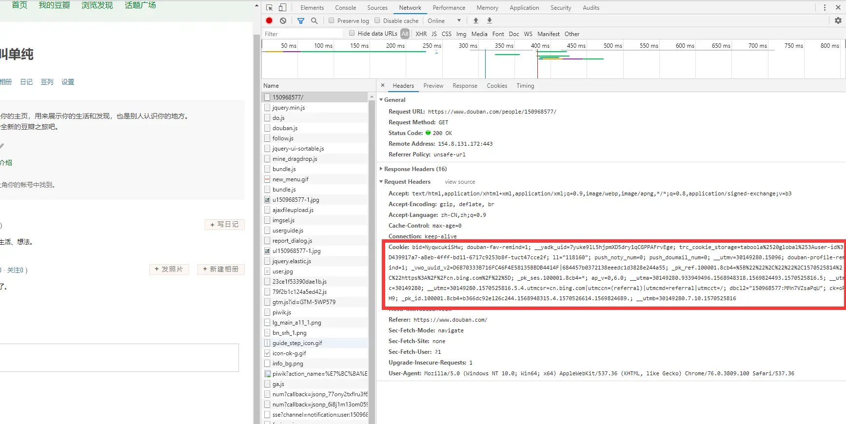 * 先从网站上登录,然后查看 request headers 里面的 cookies