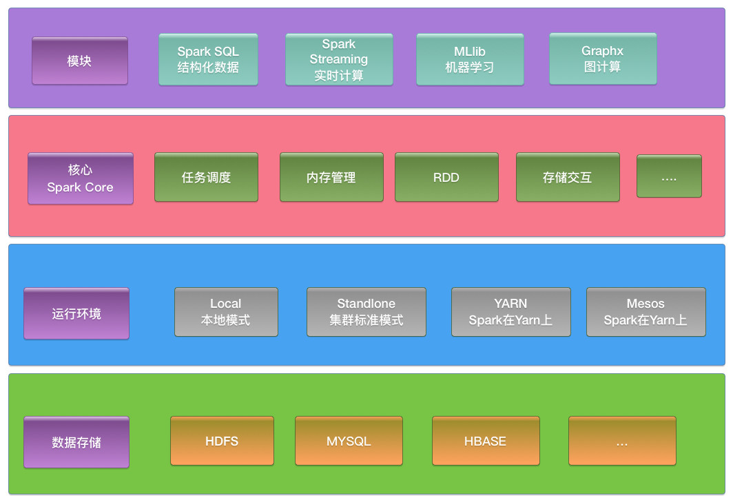 Spark 不仅支持 Scala 编写应用程序,而且支持 Java 和 Python 等语言进行编写,特别是 Scala 是一种高效、可拓展的语言,能够用简洁的代码处理较为复杂的处理工作。