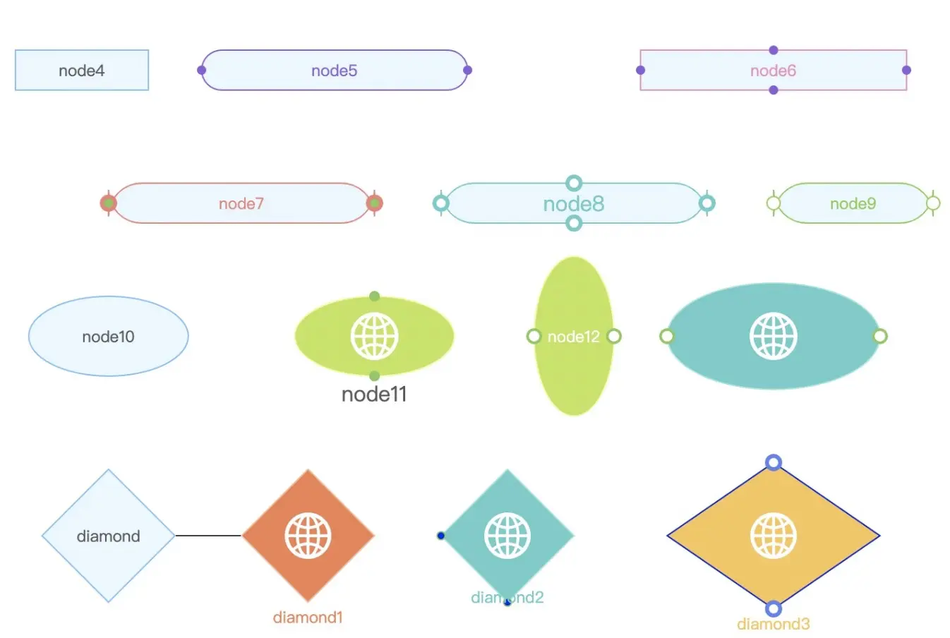 在 G6 3.1 中,我们内置了 circle、rect、image 等8大类型的节点,可以扩展出 20+ 种节点类型,足以支持常见的图分析领域的需求,更详情的内容请参考这里。