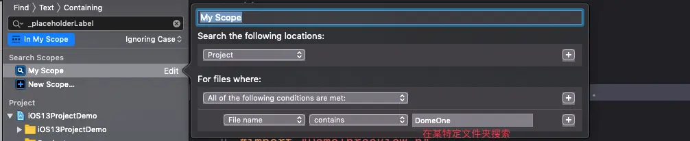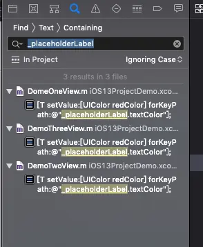 额外延伸搜索的问题,普片都是复制 _placeholderLabel.textColor 代码进行全局搜索,但是可以包含第三pod的框架里面的文件 ,所以搜索需要添加筛选