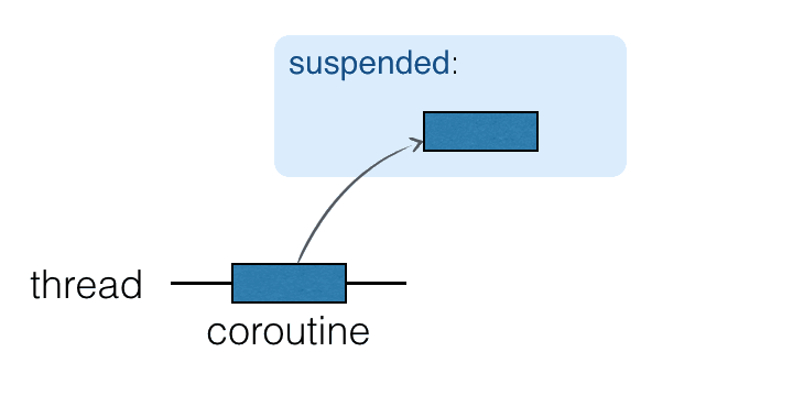 协程是在线程顶部运行的计算,可以暂停。 所谓暂停,是指相应的计算可以暂停,从线程中删除并存储在内存中。 同时,线程可以自由地被其他活动占用: