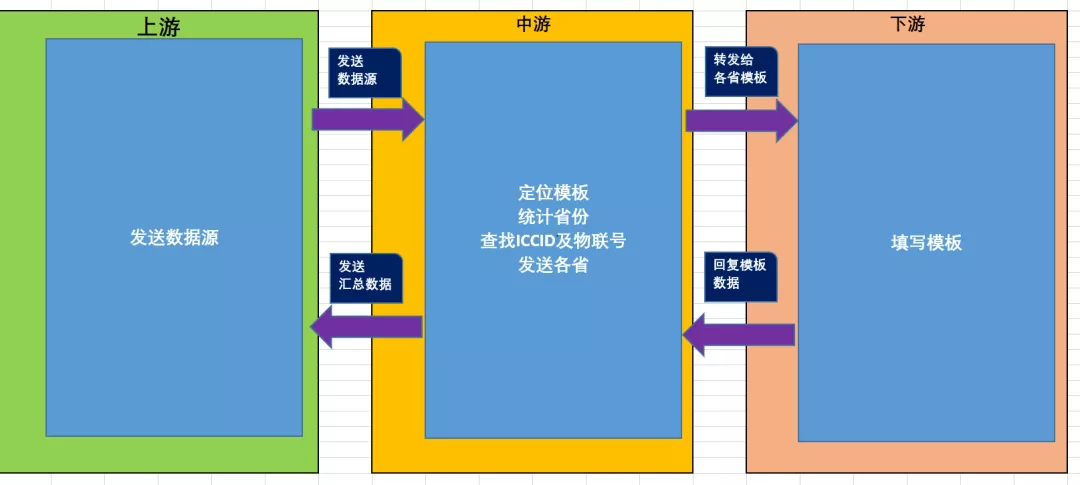 数据源在经过统计或者物联号经过匹配出数据后,需要发送给统计到的相关各省,发送出去是容易的,关键是还要把发送出去的模板收集回来,等各个省份收集齐了,再汇总匹配每一个数据源里面的相关信息。
