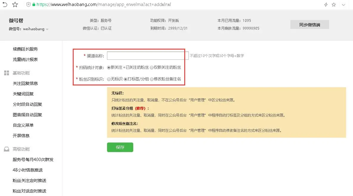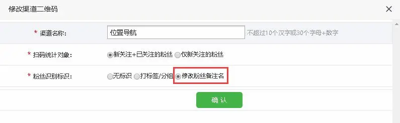 创建渠道二维码》渠道名称即打标签的名称,公众号标签上限为100个,超过这个数字可以选择修改粉丝备注名。