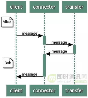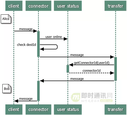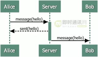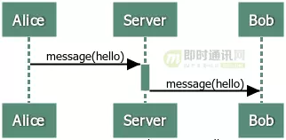 这个消息会像一个普通聊天消息一样被服务器处理,最终发送给Alice。