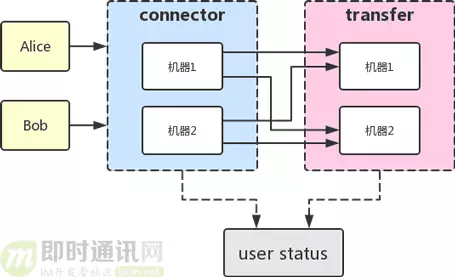 当用户量越来越大,必然需要增加服务器的数量,用户的连接被分散在不同的机器上。此时,就需要存储用户连接在哪台机器上。