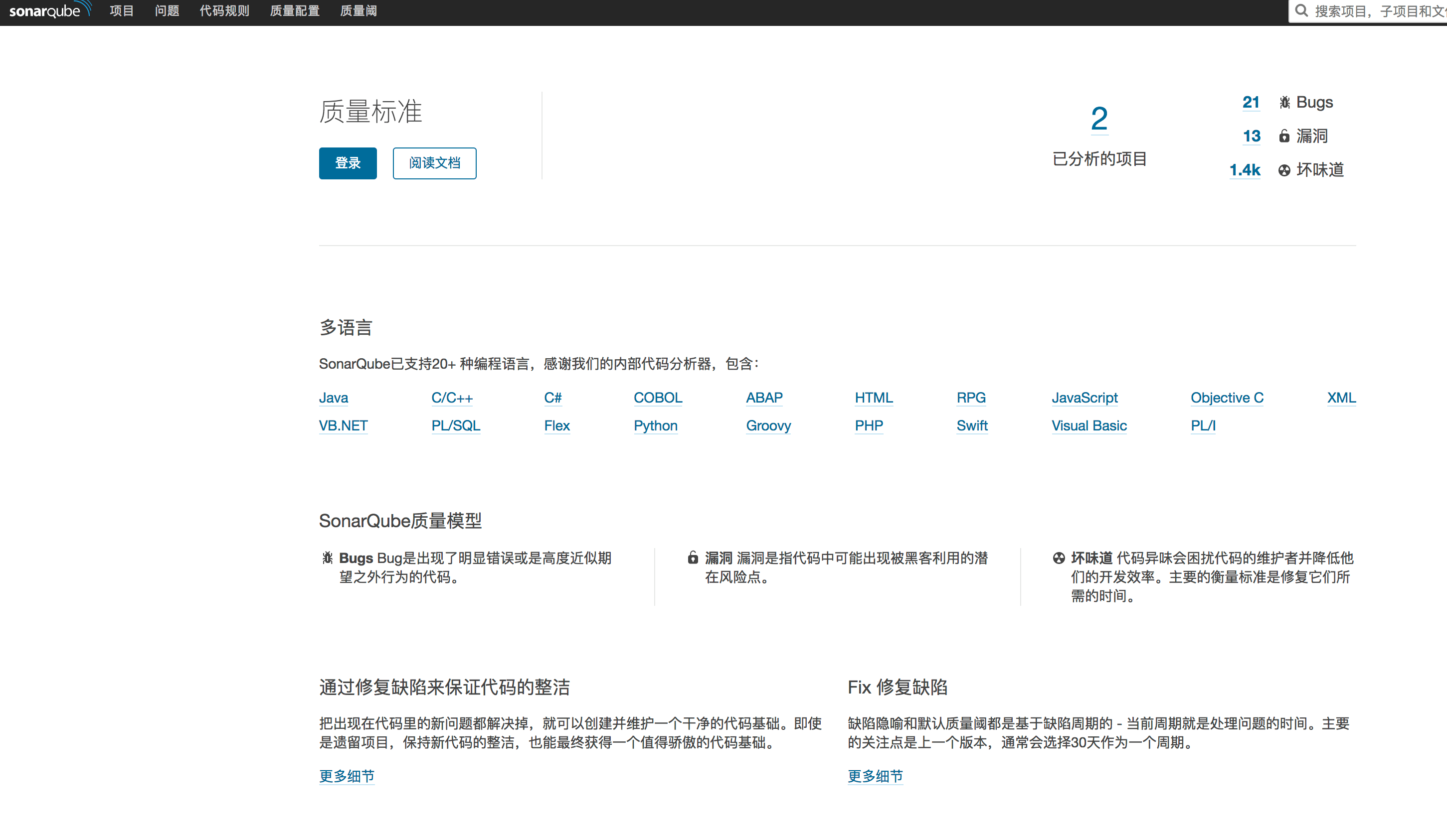 - SonarQube 特征