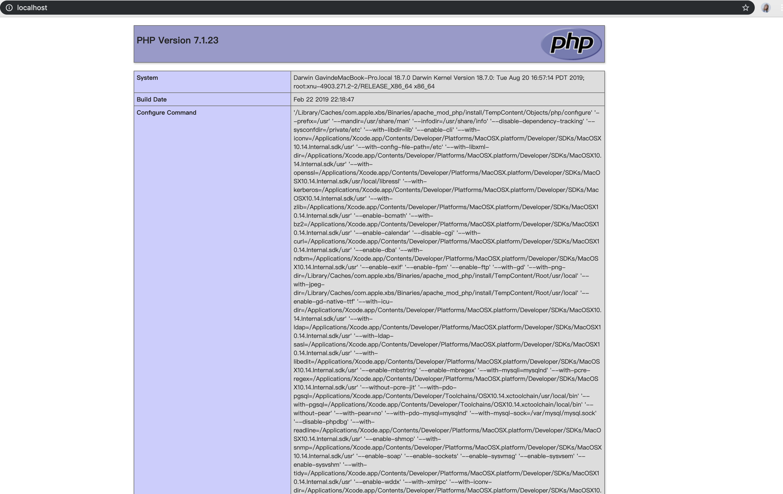 mac系统都自带了Apache和PHP环境,只是默认情况下没有开启,我个人设备环境如下: PHP版本:7.1.23 Apache版本 2.4.34 (Unix) 系统版本:macOS Mojave 10.14.6