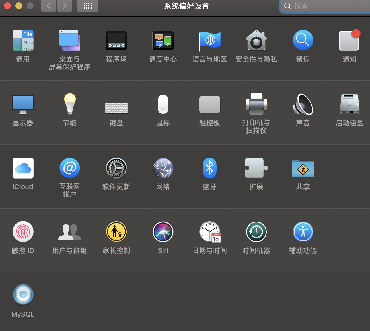 1.进入系统偏好设置,在最下方找到并打开MySQL。