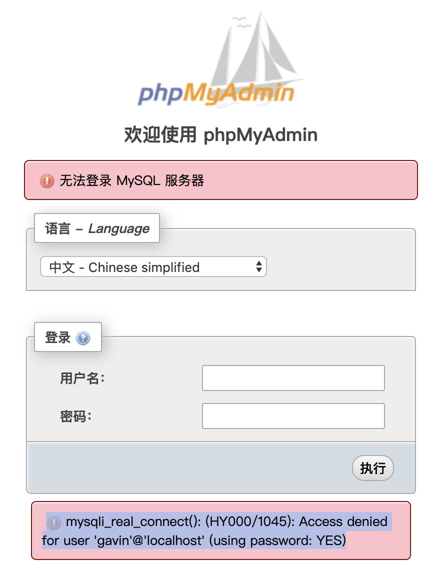 因为之前装过xammp和mysql,所以我的环境有点乱,导致我登陆时出现如下问题
