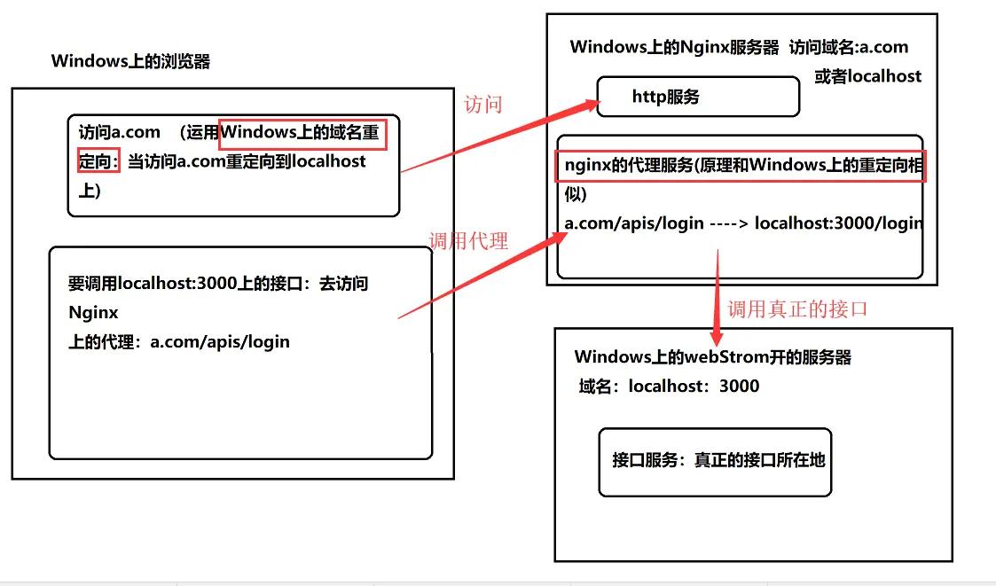 例如: 浏览器访问 a.com,在a.com的页面中要调用b.com的接口 b.com/login 在a的服务器中设置代理,让http://a.com/apis/login 指向 b.com (b.com/login)