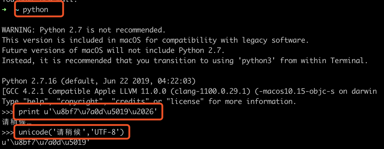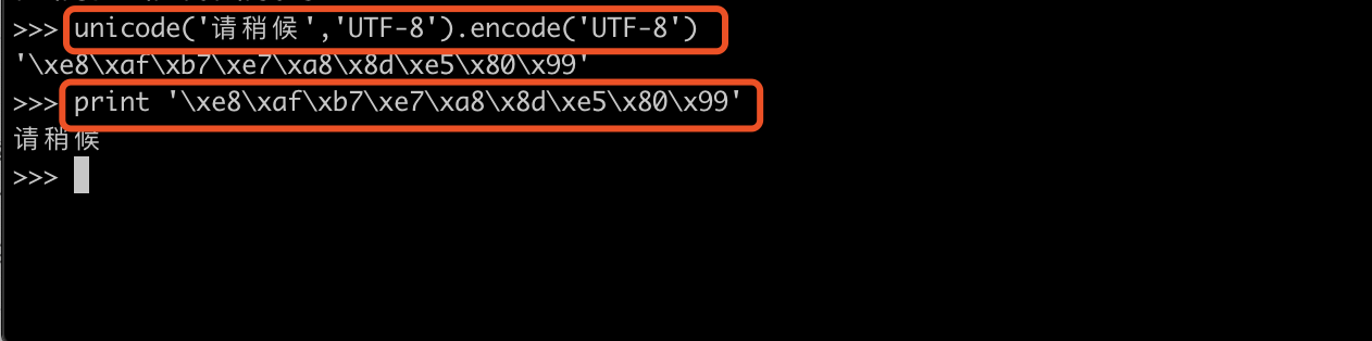 由于在终端打印出来的UILabel里面显示的中文都是经过Unicode编码的,所以如果我们需要根据当前页面上的中文字符找到其所对应的编码后的字符,可以借助Python来进行中文和编码后的转换。