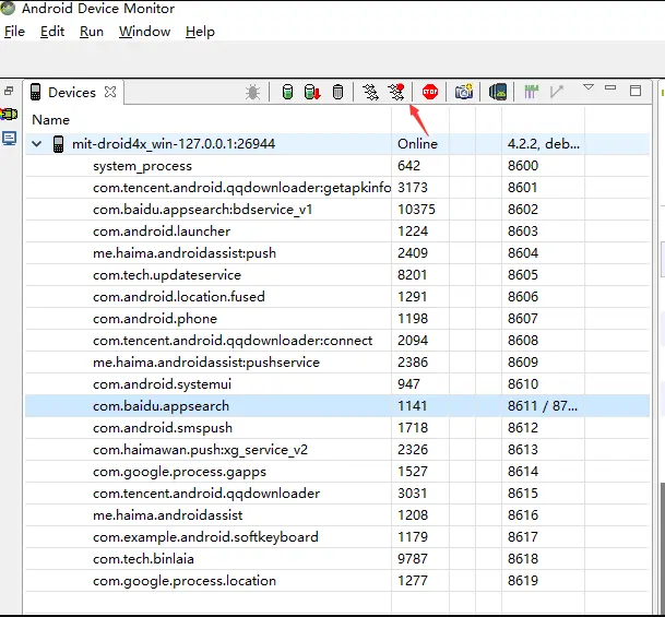 2.先选择应用进程,然后点击